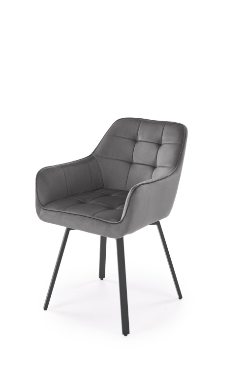 • Aksamitna tapicerka: Siedzisko i oparcie są obite miękką tkaniną typu velvet, która jest przyjemna w dotyku i dodaje krzesłu luksusowego wyglądu.
