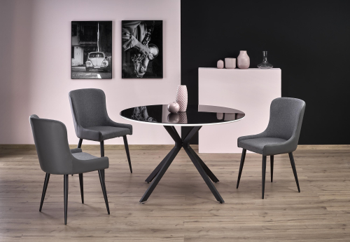 wymiary: fi120/76 cm, materiał: szkło / MDF lakierowany / stal malowana proszkowo, kolor: blat - czarny / biały, nogi - czarny