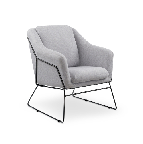 Wypoczynkowy fotel Soft 2 wyścielony tkaniną w modnym kolorze jasny popiel na stelażu ze stali malowanej proszkowo w kolorze czarnym.