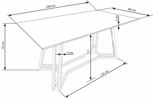 wymiary: 160/90/75 cm,materiał: szkło / stal chromowana kolor: blat - czarny marmur, nogi - złoty