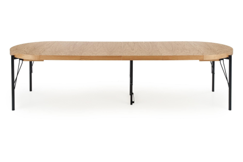 stół rozkładany, wymiary: 100-300/100/76 cm, materiał: MDF + okleina naturalna (dębowa) / stal malowana proszkowo, kolor: blat - dąb naturalny, nogi - czarny