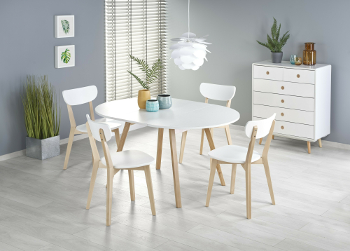 RUBEN stół kolor blat - biały, nogi - naturalny (102-142x102x75 cm)
