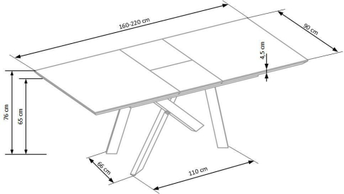 stół rozkładany, wymiary: 160-200/90/76 cm, materiał: MDF okleinowany / stal malowana proszkowo, kolor: blat - dąb złoty, nogi - czarny UWAGA: po wylaniu jakichkolwiek płynów na blat stołu należy niezwłocznie wytrzeć go do sucha w celu uniknięcia wchłonięcia wody przez materiał blatu.