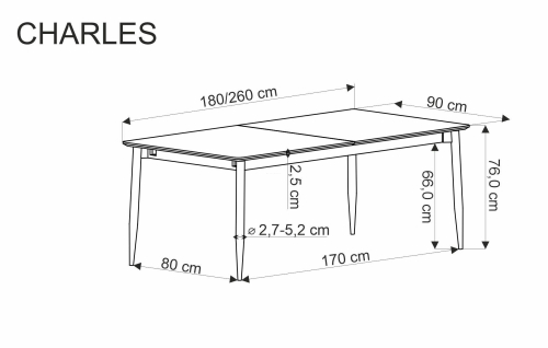 Stół CHARLES to doskonałe połączenie nowoczesnego designu i funkcjonalności, które sprawdzi się w każdym pomieszczeniu. Jego rozkładana konstrukcja umożliwia dostosowanie wielkości blatu do indywidualnych potrzeb, co czyni go idealnym rozwiązaniem na różne okazje — od kameralnych kolacji po większe spotkania rodzinne.