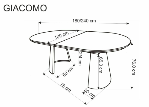 GIACOMO stół rozkładany 180-240/100/76/78 cm, blat - naturalny, noga - czarny