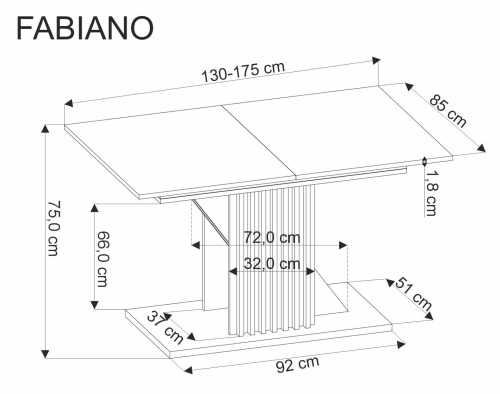 Dzięki rozkładanej konstrukcji stół FABIANO z łatwością dostosowuje się do Twoich potrzeb, co czyni go praktycznym dodatkiem do kuchni lub jadalni. Niezależnie od liczby gości, możesz w prosty sposób zwiększyć jego wymiary, zapewniając każdemu odpowiednią przestrzeń.