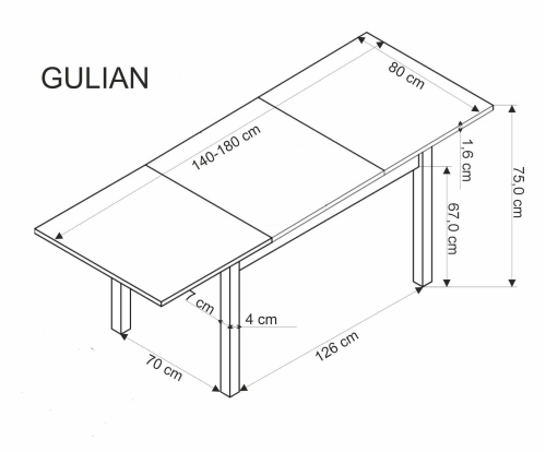 Stół rozkładany GULIAN to idealne rozwiązanie dla osób, które cenią sobie funkcjonalność i nowoczesny design w swoim wnętrzu. Stworzony z myślą o wygodzie użytkowania, doskonale sprawdzi się zarówno w niewielkich pomieszczeniach, jak i tych większych, gdzie często przyjmujesz gości. Dzięki możliwości rozkładania jego wymiar wynosi od 140 cm do 180 cm długości, a stała szerokość to 80 cm, co zapewnia komfort podczas posiłków.