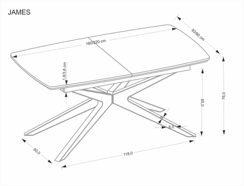 Stół rozkładany JAMES to idealny wybór dla osób poszukujących funkcjonalnego i stylowego mebla, który dopasuje się do każdego wnętrza. Dzięki możliwości rozłożenia o dodatkowe 60 cm, dostosujesz jego rozmiar do potrzeb Twojej rodziny oraz przyjaciół, co czyni go doskonałym rozwiązaniem zarówno na codzienne posiłki, jak i na większe spotkania. Oto najważniejsze cechy tego wyjątkowego stołu: