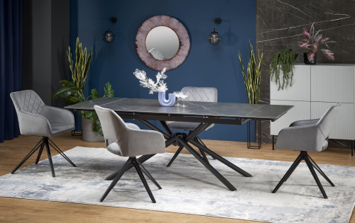 VITORINO stół rozkładany, blat - czarny marmur, nogi - czarny
