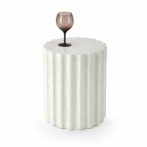 Wymiary ławy wynoszą fi 41/46 cm, co czyni ją idealnym wyborem zarówno do przestronnych salonów, jak i mniejszych mieszkań. Dzięki unikalnej teksturze z delikatnymi wypustkami, FARA przyciąga wzrok i nadaje wnętrzu nowoczesnego charakteru. To doskonały stół kawowy, który doda elegancji każdemu spotkaniu przy filiżance kawy czy lampce wina.