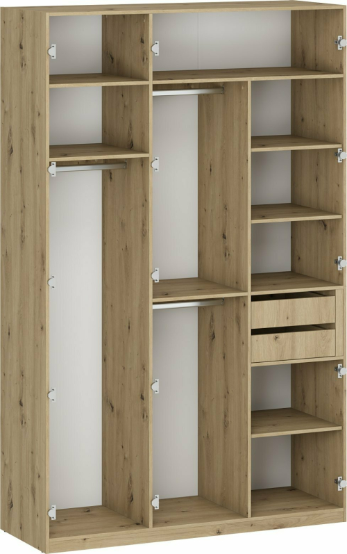 • Zawiasy: Ciche domykanie: Drzwi szaf wyposażone są w zawiasy z systemem cichego domykania, co zapewnia komfortowe i bezgłośne użytkowanie.