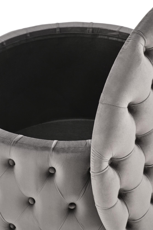 Pufa NUNEZ w odcieniu popielatym to stylowy i funkcjonalny dodatek, który doskonale wkomponuje się w różnorodne wnętrza. Wyposażona w miękką tkaninę velvet, zapewnia nie tylko elegancki wygląd, ale też ogromny komfort. Jej okrągły kształt i efektowne pikowanie nadają jej wyjątkowego charakteru, przyciągając wzrok i wzbogacając aranżację każdego pomieszczenia.