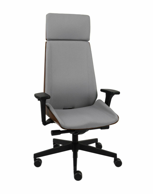 Regulowane oparcie ze zintegrowanym zagłówkiem HD zostało wykończone wysokiej jakości drewnem bukowym pochodzenia polskiego, które jest bejcowane na wybrany kolor oraz lakierowane wysokiej jakości lakierem wodnym, bezpiecznym dla środowiska i ludzi.