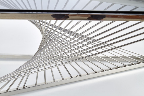 • Kolor: dymiony szary blat w połączeniu z błyszczącym srebrnym stelażem tworzy elegancki kontrast
